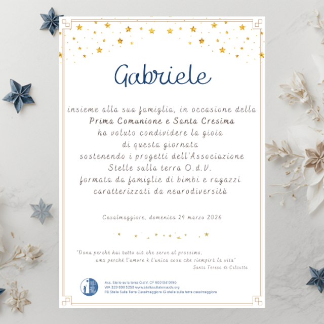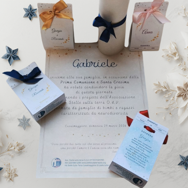 Le Bomboniere e le pergamene delle Stelle sono un gesto unico di solidarietà, pensate per celebrare con stile e condividerne il valore.